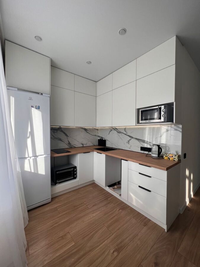 Мы проектируем встроенные кухни для маленькой кухни с учётом расположения окон, труб и вентиляции. Благодаря продуманной планировке и встроенной технике кухня остаётся функциональной, удобной и визуально более просторной.