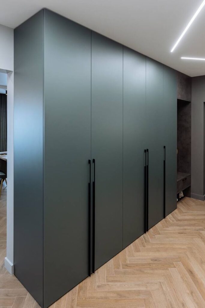 Такие шкафы позволяют использовать максимум пространства без зазоров, создавая аккуратный и современный интерьер.